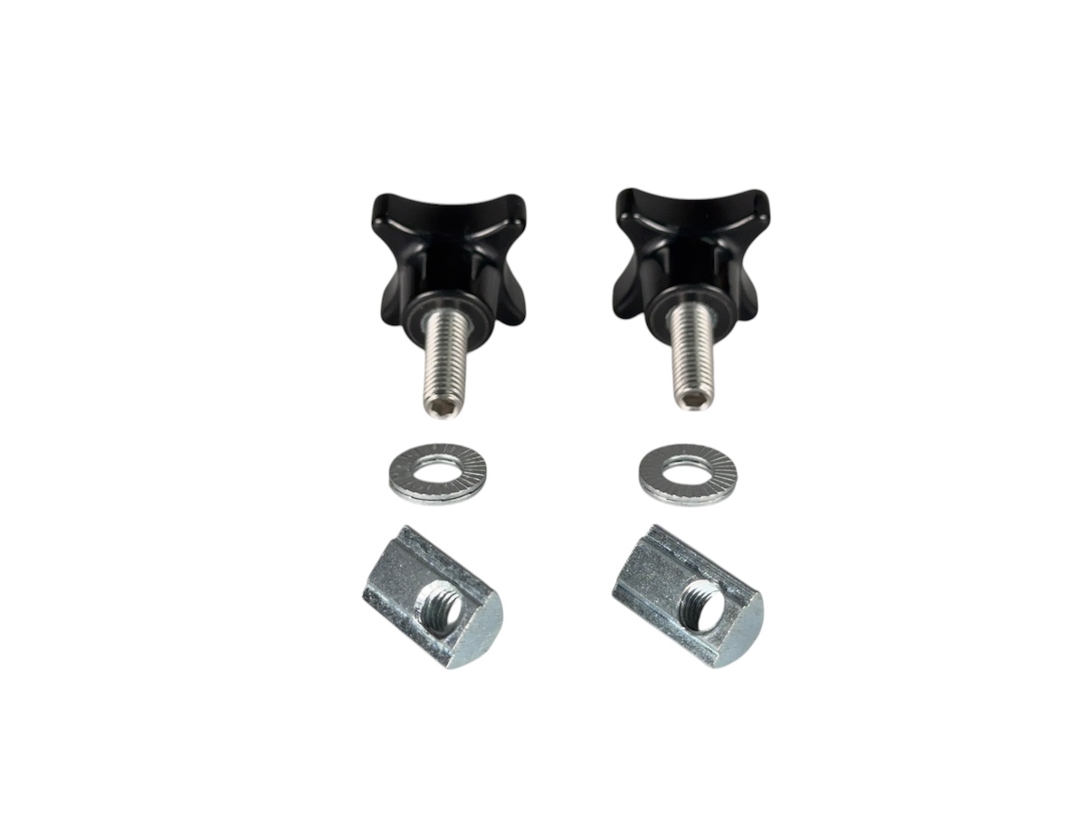 An M8 Fixing kit allows you to attach one of our Original Surface Mount Fork Mounts or any Off-Set mounting plates to a single or twin slot rail, each kit comes with a pair of tried and tested Nord Loc locking washers giving that extra security that nothing is coming loose whilst in transit.