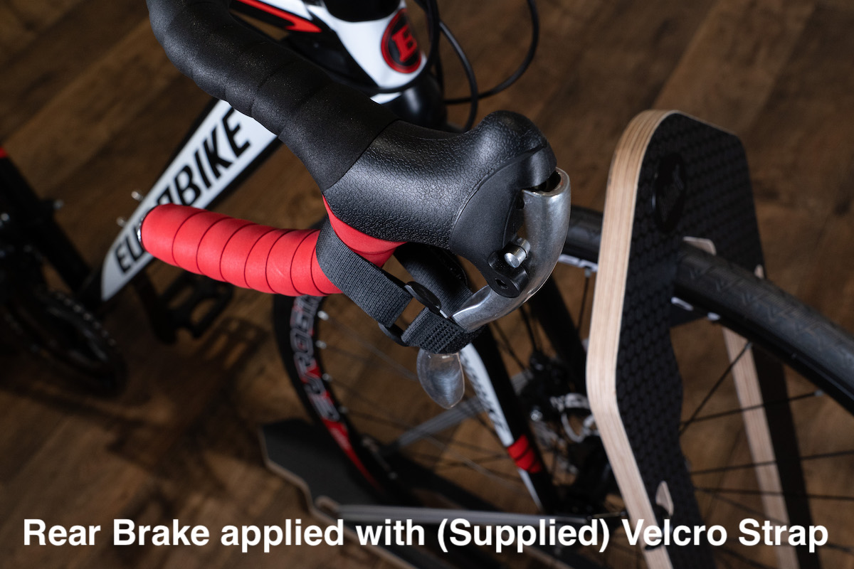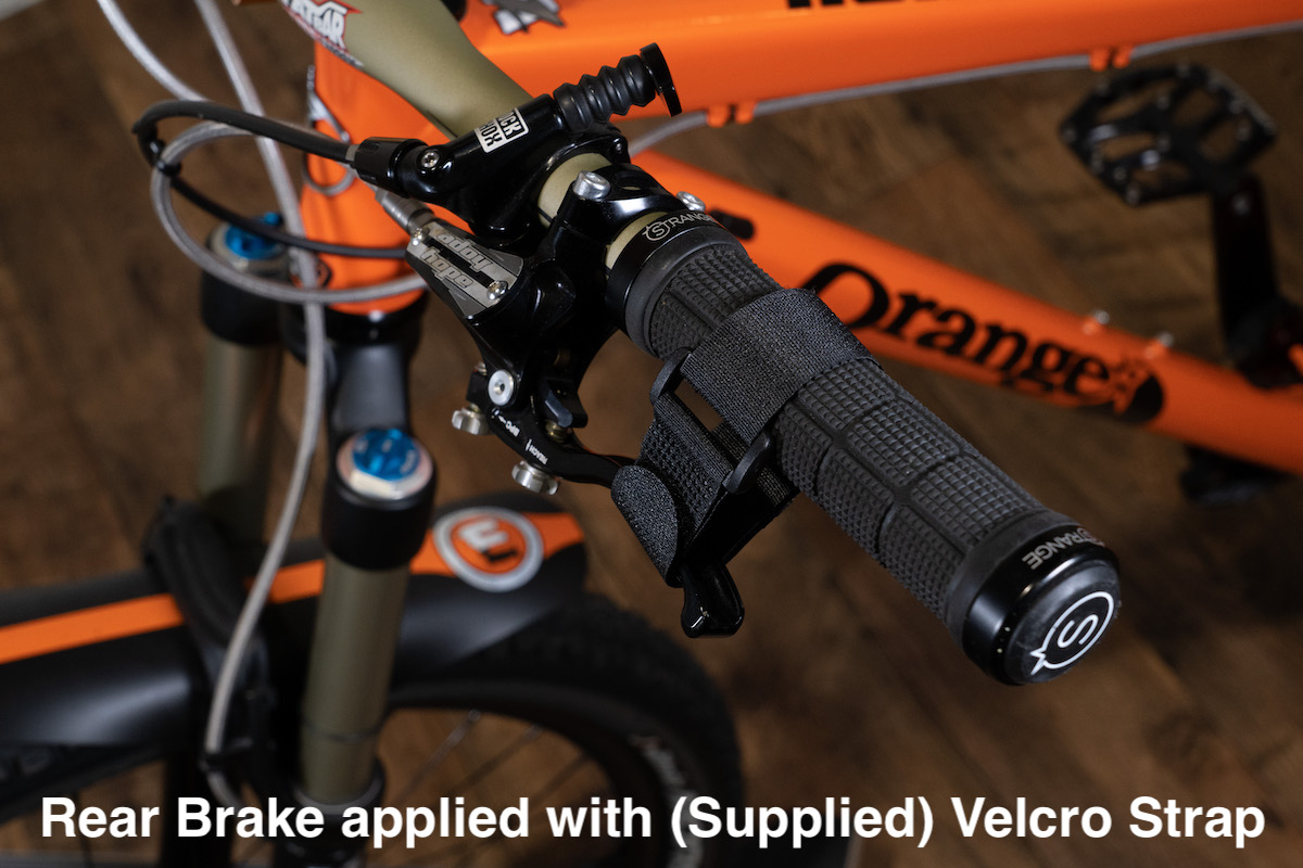 Just one more thing ! we supply a velcro strap for your rear brake lever, wrap it around the handlebar grip and brake lever.  Making sure to apply the brake before doing up.  This stops the bikes from moving when you pump the brakes in the vehicle!!