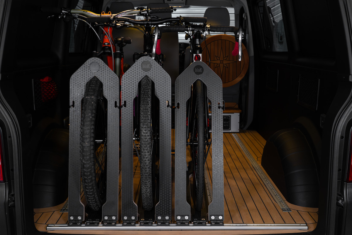 LAY-Z-RAK 3 Bike 1200SD designed to be used in the same way as our popular Fork Mount system. Fitted at the rear of the van giving full access to secure each bike.