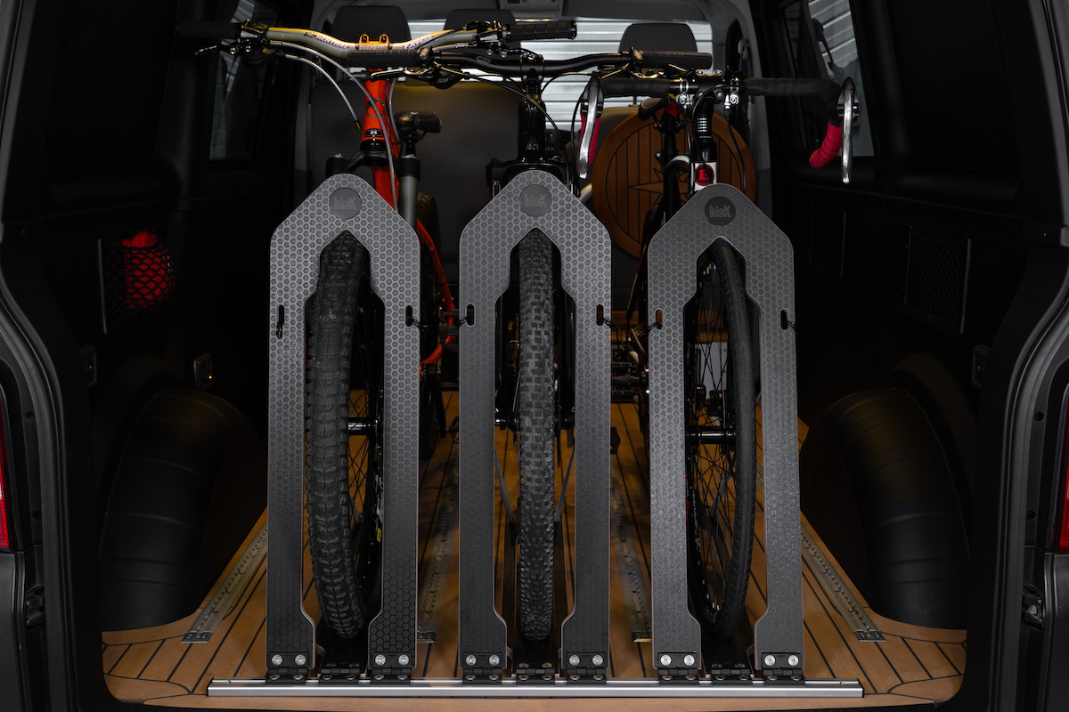 LAY-Z-RAK 3 Bike 990SD designed to be used in the same way as our popular Fork Mount system. Fitted at the rear of the van giving full access to secure each bike.