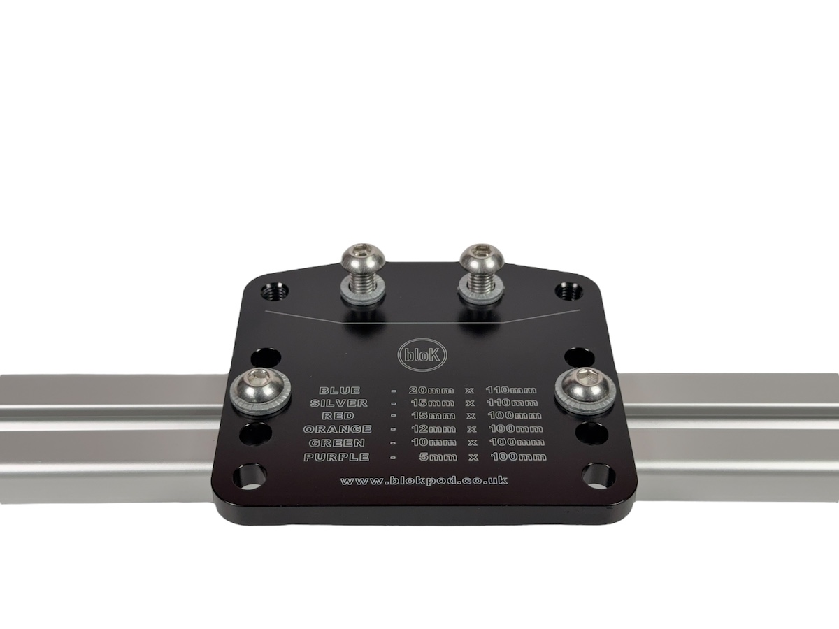 We have added a selection of M8 Clearance holes to each plate which gives you infinite positioning possibility’s, straight, angled, depth and sliding adjustment.