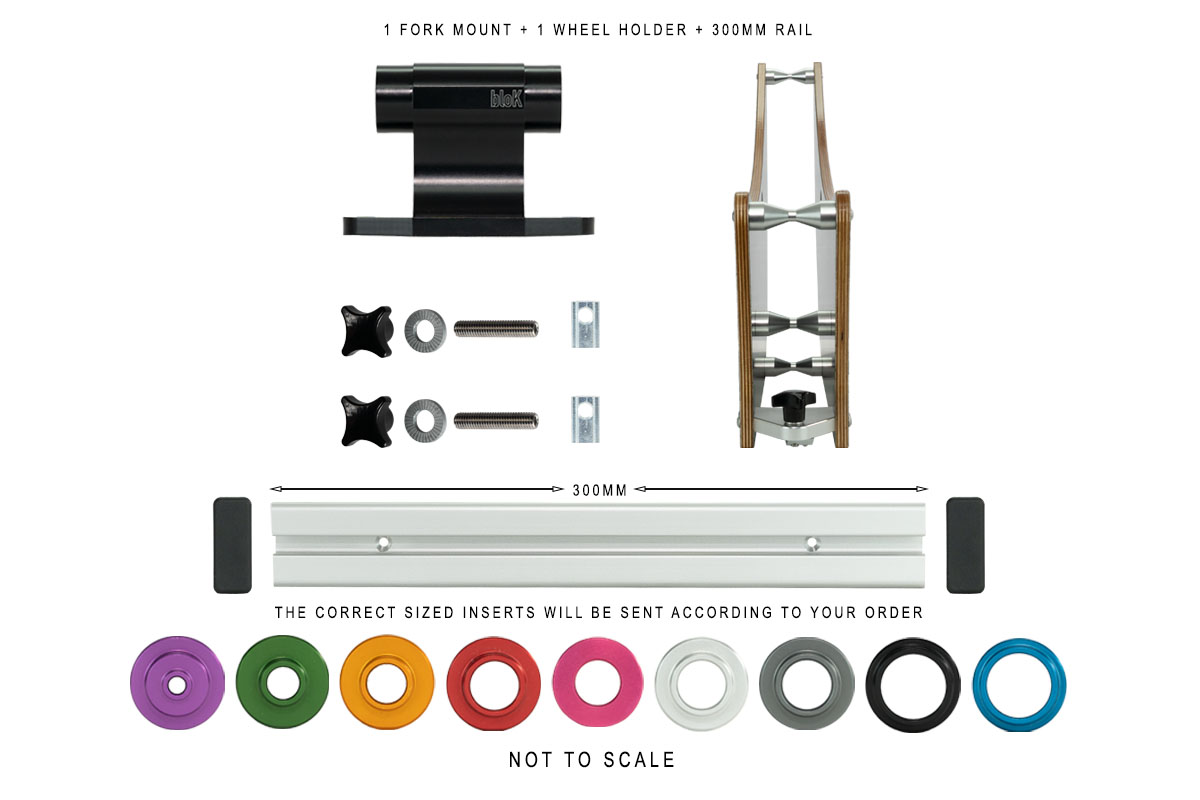 300mm Screw Down Single Slot Rail + (1)Fork Mount + (1)Wheel Holder