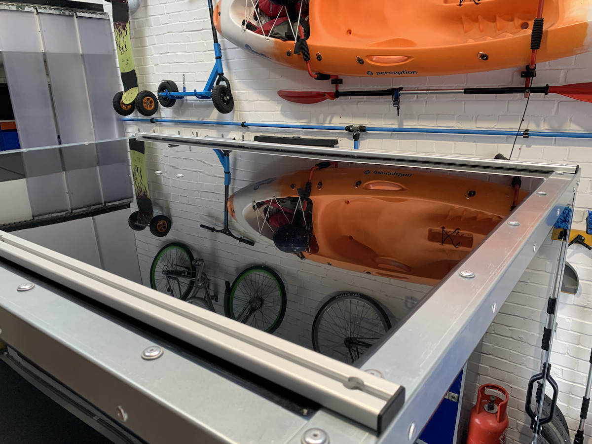Roof rails are required to be able to mount the Front Runner roof rack.  Each rail is mounted in 5 places to the trailer with 2 off additional cross bars mounted across the internal underside of the roof for additional weight loading.