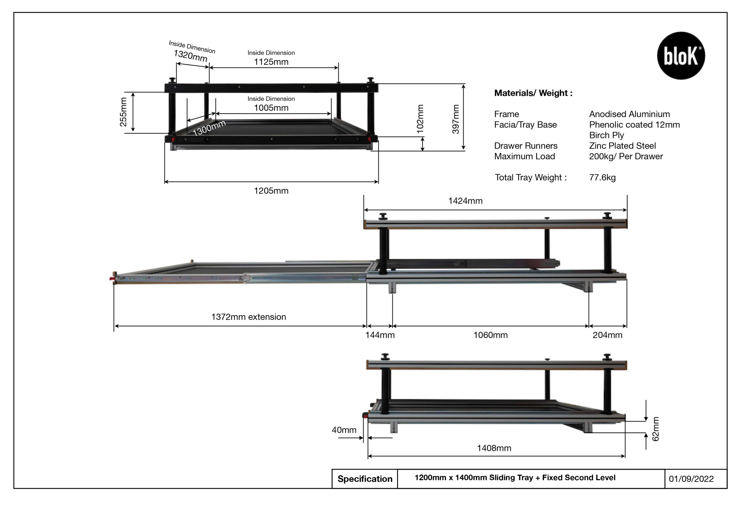 - 1 x Sliding Tray Width 1205mm x Depth 1448mm (Base) (***Vehicle fixing kit not supplied and can be purchased separately***)