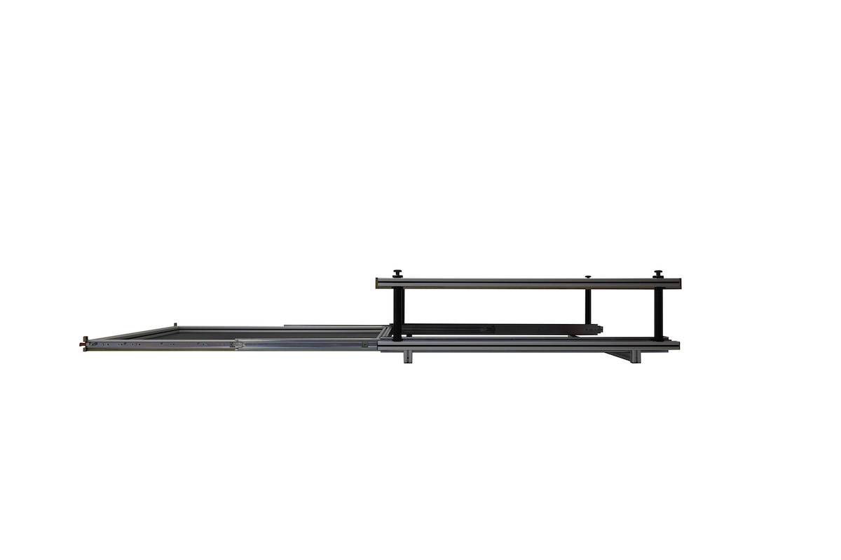 The sliding trays we produce are constructed from an anodised aluminium extrusion which have slots for drop in sliding T nuts (M4, M5, M6 and M8) so adding mounting points is simple. The drawer runners we use are a heavy duty lockable runner that can take weights of up to 230kg (depending on size). To extend the tray from its stored position all you need do is depress the two red locking levers and pull, when fully extended the tray will lock automatically, to release do the same in reverse.